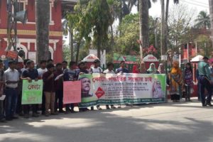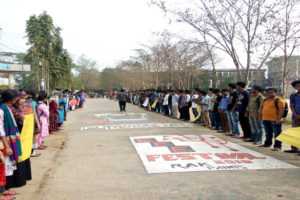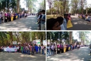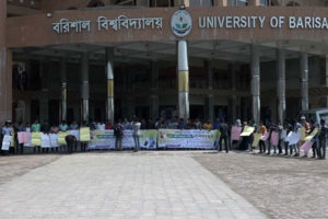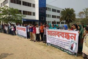 বহিরাগতদের হামলার প্রতিবাদে গণ বিশ্ববিদ্যালয়ে শিক্ষার্থীদের মানববন্ধন