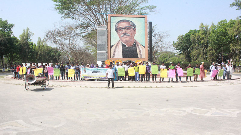 ক্যাম্পাস সূত্রে, রোববার বেলা ১১টায় ক্যাম্পাসের মৃত্যুঞ্জয়ী মুজিবের পাদদেশে সমাবেশ অনুষ্ঠিত হয়।