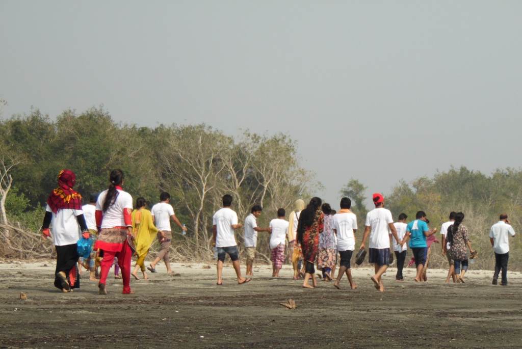 সকাল ১২ টায় সবাই রিজার্ভ জাহাজে উঠলাম। প্রয়োজন মতো খাবারদাবার ও আনুষঙ্গিক জিনিসপত্র জুয়েল ভাই আগে থেকেই ব্যবস্থা করে রেখেছিলেন। দুপুর ১২টার দিকে সাগর পাড়ে করে রওনা দিলাম পৃথিবীর বৃহত্তম ম্যানগ্রোভ বনের দিকে। জাহাজ এগোচ্ছে। চারদিকে সবুজ গাছ। মাঝখানে ছুটে চলা নদী। সত্যিই সে এক অপরূপ দৃশ্য। চোখ দুটোকে যেন ফেরানো যাচ্ছে না। পেছন থেকে আবির স্যারের ডাক, ‘চল নাস্তা খাবে’।