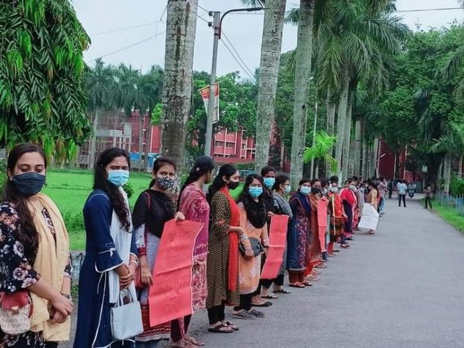 দেশব্যাপী সাম্প্রদায়িক হামলার প্রতিবাদে বাকৃবি সনাতন সংঘের মানববন্ধন