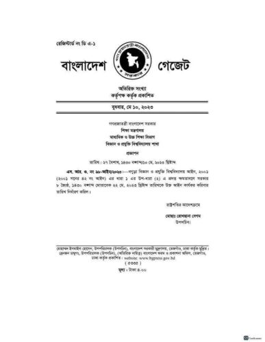 শিক্ষা মন্ত্রণালয়ের মাধ্যমিক ও উচ্চ শিক্ষা বিভাগের বিজ্ঞান ও প্রযুক্তি বিশ্ববিদ্যালয় শাখার উপ সচিব মোছা. রোখছানা স্বাক্ষরিত প্রজ্ঞাপনে এ তথ্য জানানো হয়েছে। প্রজ্ঞাপনটি ৮ মে গেজেট আকারে প্রকাশিত হয়।