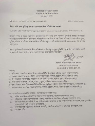 ঘূর্ণিঝড় ‘মোখা’-য় বন্ধ থাকবে যে কয়টি অঞ্চলের শিক্ষা প্রতিষ্ঠান