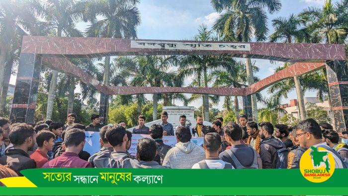 আজ দুপুর ১২.৩০ টায় অনুষদের সামনে থেকে মিছিল বের করে তারা প্রতিবাদ স্লোগান দিতে থাকে। পরবর্তীতে বিশ্ববিদ্যালয়ের বঙ্গবন্ধু চত্বরের সামনে তারা বিক্ষোভ সমাবেশ করে।