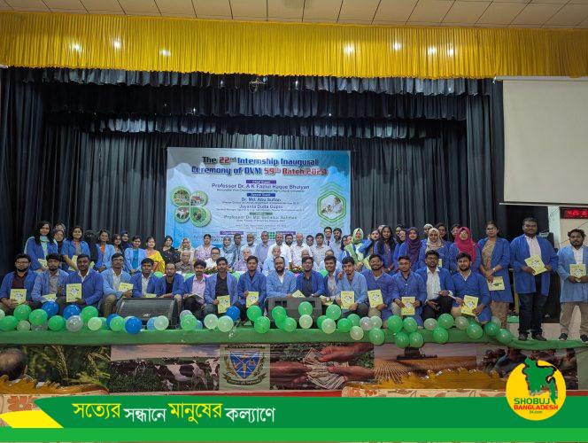 বাংলাদেশ কৃষি বিশ্ববিদ্যালয়ে (বাকৃবি) ভেটেরিনারি অনুষদের ৫৯তম ব্যাচের শিক্ষার্থীদের ইন্টার্নশিপের উদ্বোধনী অনুষ্ঠিত হয়েছে। এবছর ব্যাচটির মোট ১৯৩ জন শিক্ষার্থীর মধ্যে ৫০ জন শিক্ষার্থী বিশ্বের মোট ৬টি দেশে ইন্টার্নশিপের সুযোগ পেয়েছে।