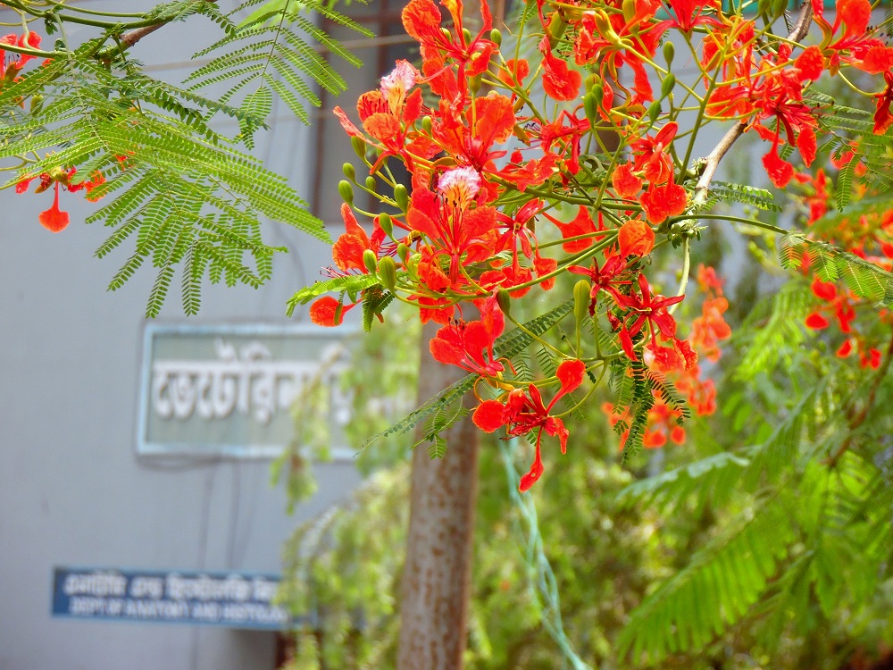 বাংলাদেশ কৃষি বিশ্ববিদ্যালয় ক্যাম্পাসে ফুটা কৃষ্ণচূড়া ।। ছবি রাফসান জানি নয়ন