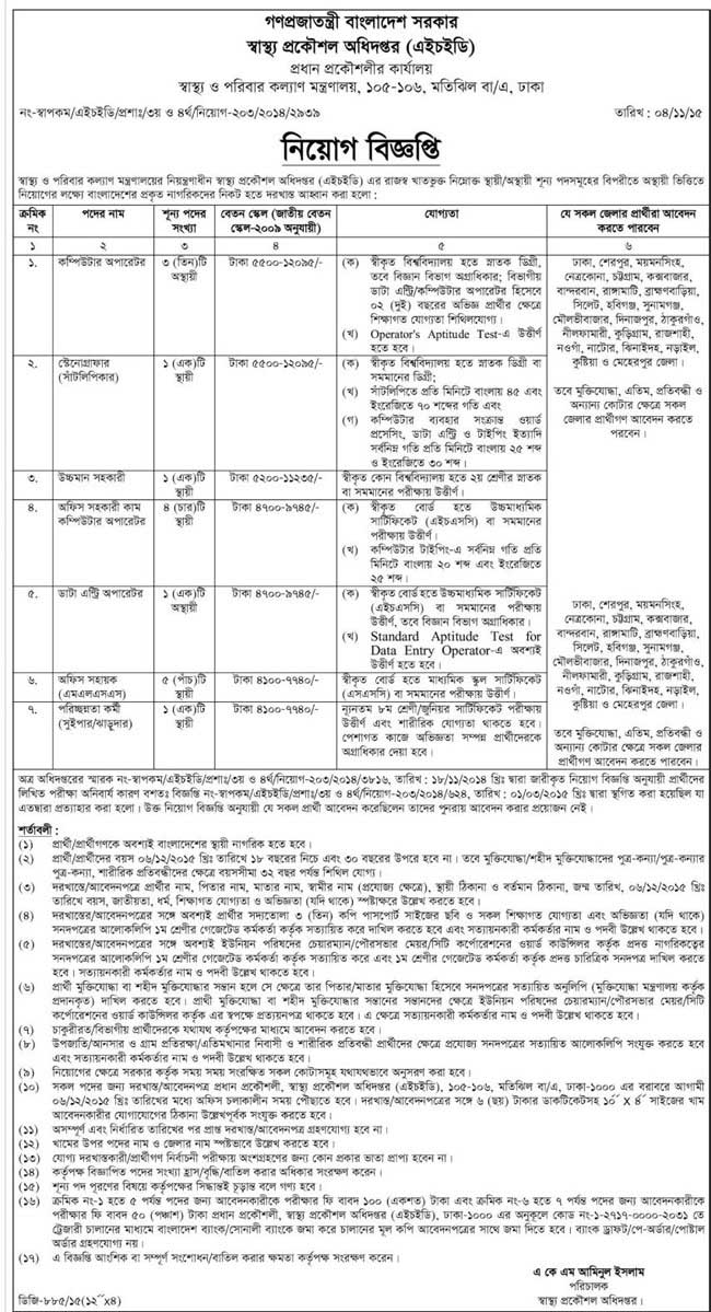 স্বাস্থ্য প্রকৌশল অধিদফতরে নিয়োগ বিজ্ঞপ্তি