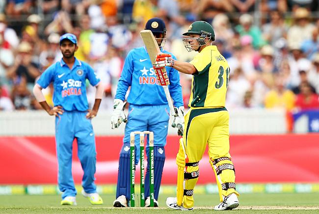 টসে জিতে ব্যাটিংয়ে নেমে অস্ট্রেলিয়ার উদ্বোধনী জুটিতে ১৮৭ রান করেন ডেভিড ওয়ার্নার ও অ্যারন ফিন্স। তাদের ব্যাটিং তাণ্ডবে কোণঠাসা হয়ে পড়েন ভারতীয় বোলাররা। ইশান্ত শর্মার বলে সরাসরি বোল্ড হয়ে ওয়ার্নার সাজঘরে ফেরেন ৭ রানের আক্ষেপ নিয়ে। ৯২ বলে ১২টি চার ও ১টি ছক্কায় ৯৩ রান করেন ওয়ার্নার। আরেক অসি ওপেনার অ্যারন ফিন্সকে অবশ্য আক্ষেপ করতে হয়নি। সেঞ্চুরি পূর্ণ করেই ক্রিজ ছাড়েন ফিন্স। দলকে বড় সংগ্রহ এনে দেওয়ার পেছনে তার অবদান ১০৭ রান। সমান ১০৭ বলে ৯টি চার ও দুটি ছক্কার সাহায্যে ইনিংসটি সাজান তিনি।