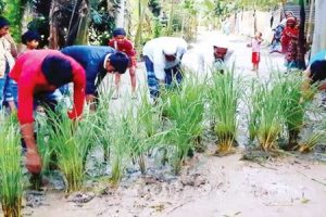 সড়কে ধানগাছ লাগিয়ে প্রতিবাদ